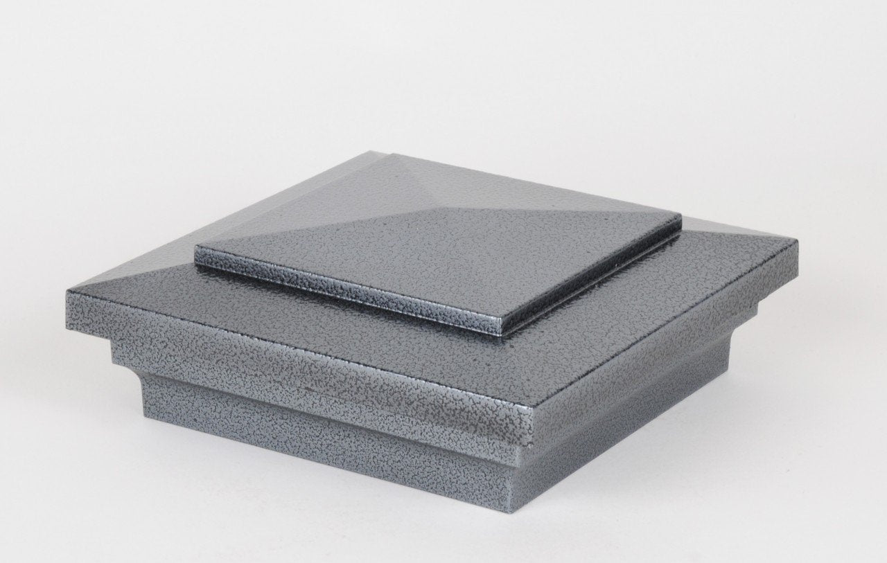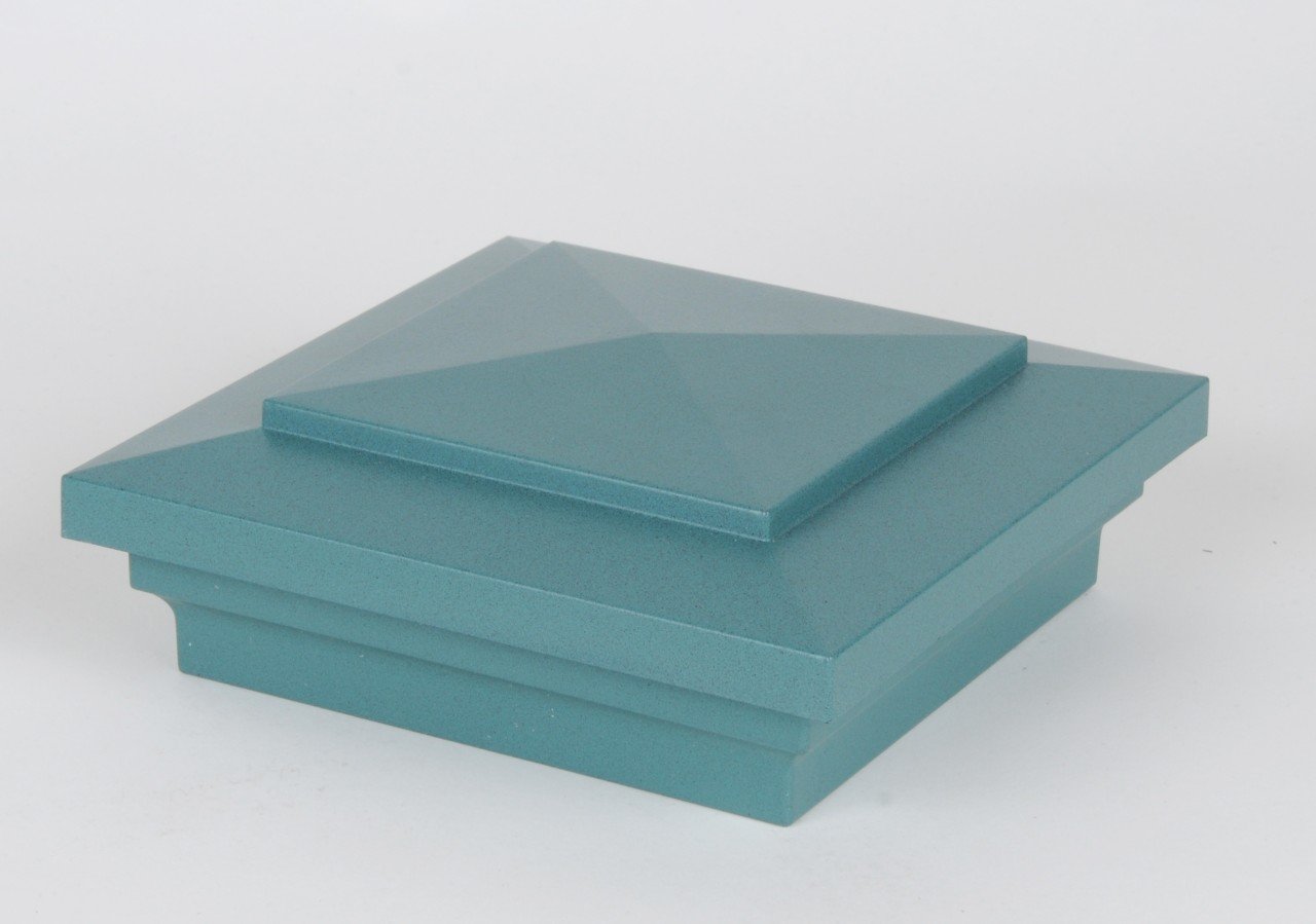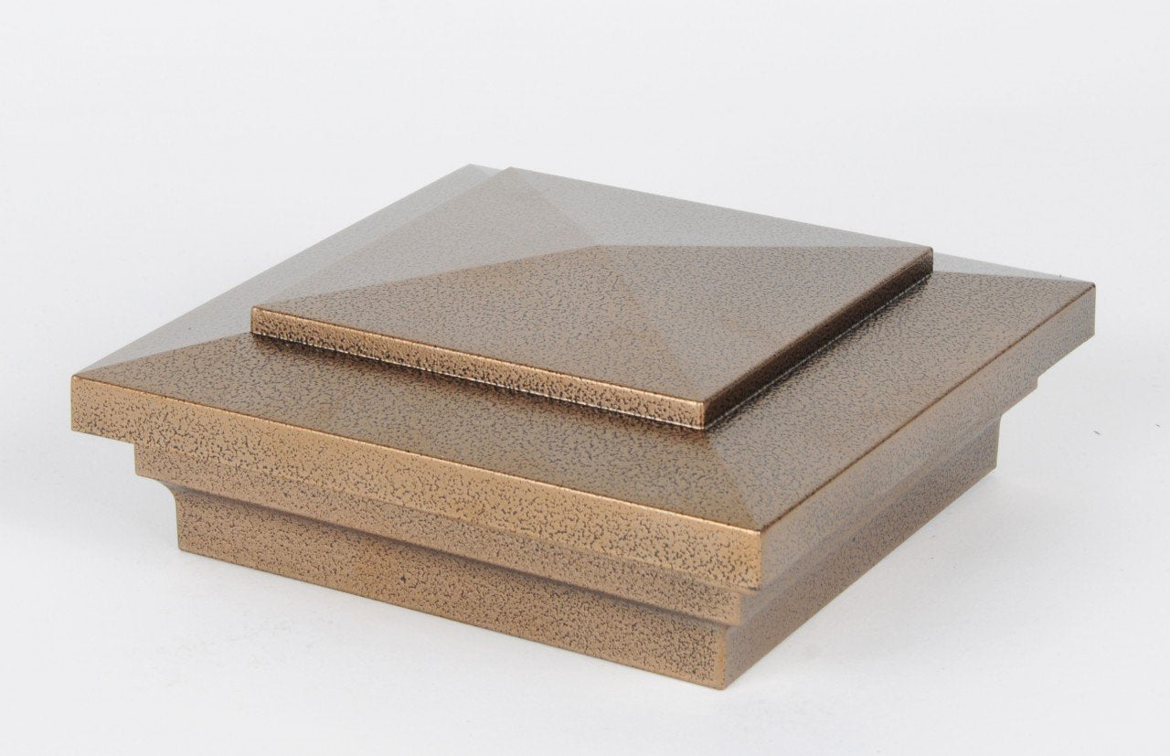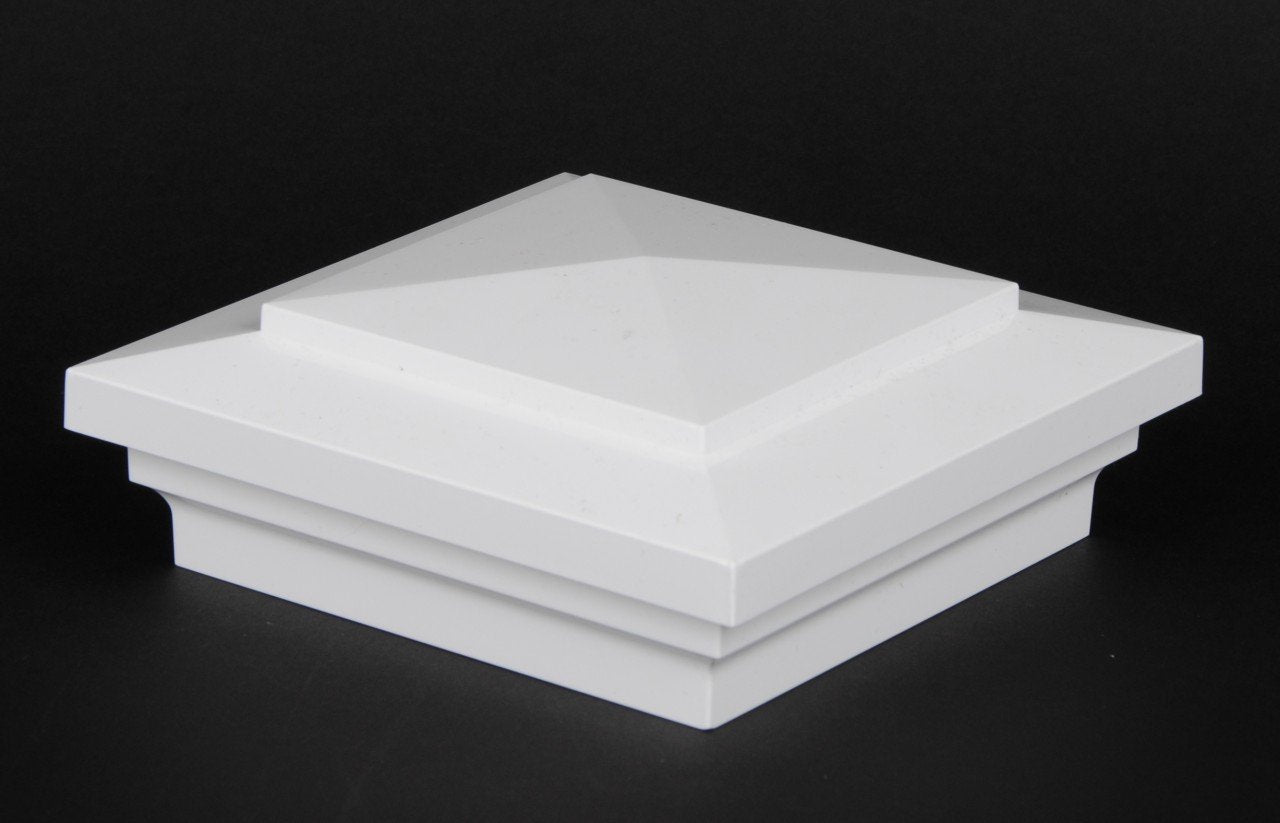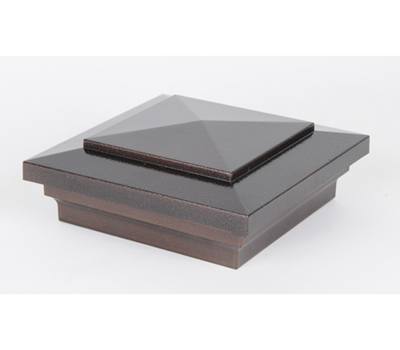 This is a 4" Sq. Cape May Antique Brown Post Cap used on a vinyl fence.