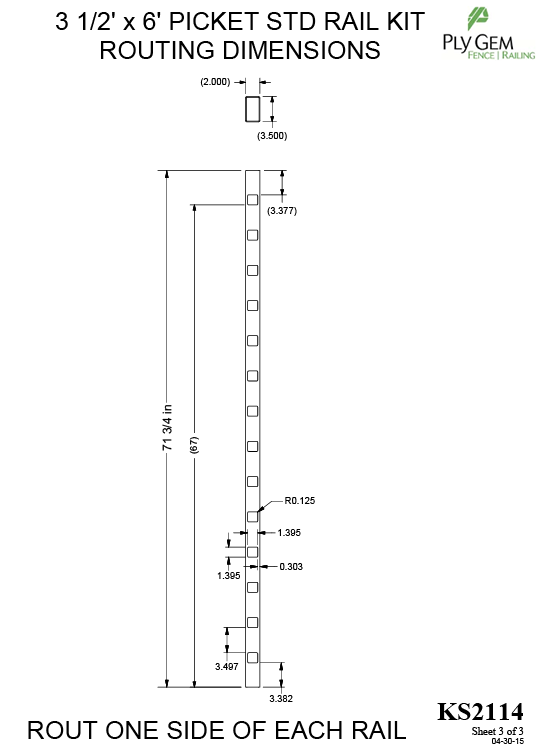 • This kit includes: (2) 2" x 3-1/2" x 71-3/4" Standard Rails, (1) 2" x 3-1/2" x 71-3/4" H-Channel, (14) 1-3/8" x 1-3/8" x 37-1/2" Pickets, (4) Bracket kits 2" x 3-1/2" Modified Base/OEM Trim, (1) Adjustable Footblock, and (1) Installation Instructions
