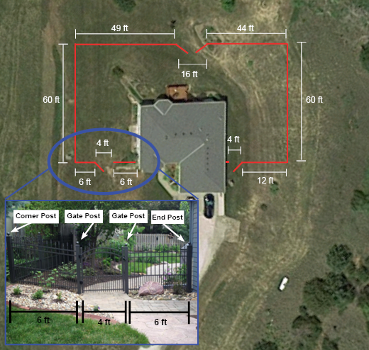 More Instructions Start CalculatorPlease take a moment to place your cursor over the photo to familiarize yourself with components necessary for calculating your fence, such as fence run, gate posts, etc.